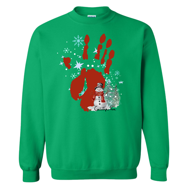 Gaitlyn Rae Christmas Winter Snowman Hand Crewneck Sweatshirt